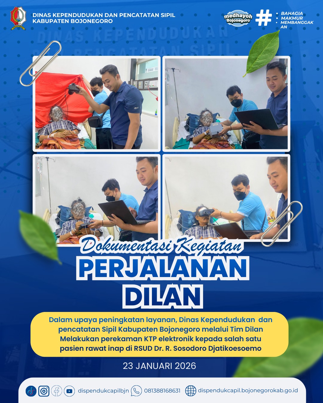 Dinas Kependudukan dan Pencatatan Sipil (Dukcapil) Kabupaten Bojonegoro terus berkomitmen menghadirkan pelayanan administrasi kependudukan yang inklusif dan menjangkau seluruh lapisan masyarakat. Salah satunya melalui kegiatan perekaman KTP-el bagi pasien yang sedang menjalani perawatan di RSUD Dr. R. Sosodoro Djatikoesoemo.