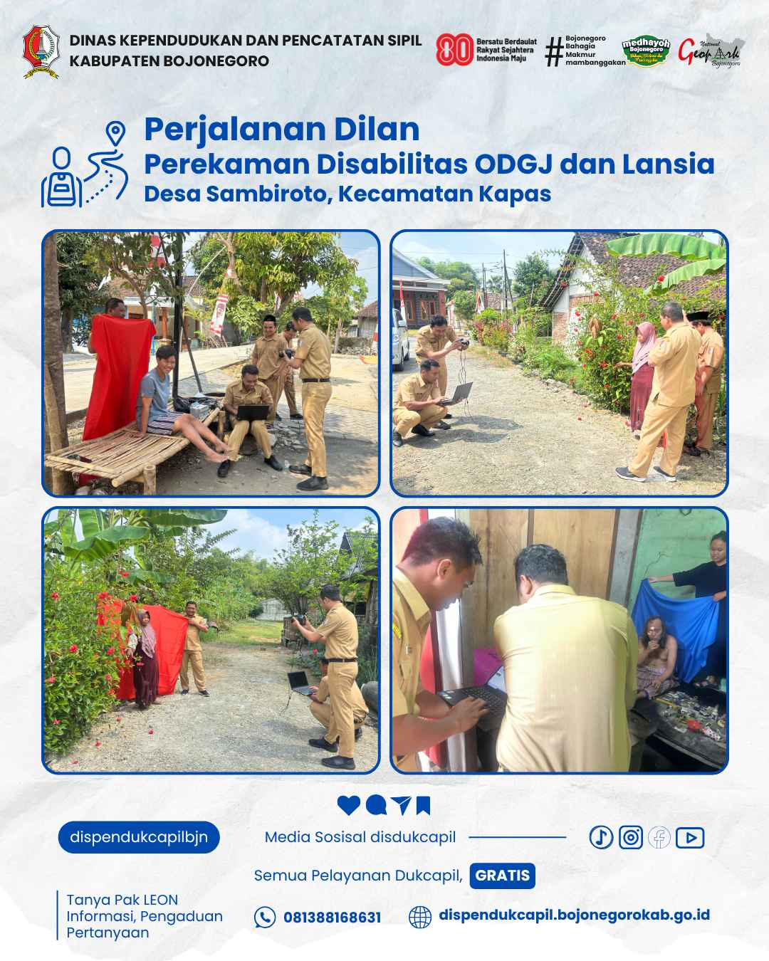 Senin, (28/07/2025), Dinas Kependudukan dan Pencatatan Sipil Kabupaten Bojonegoro terus berupaya aktif dengan melakukan layanan jemput bola untuk mendatangi warga yang kesulitan...